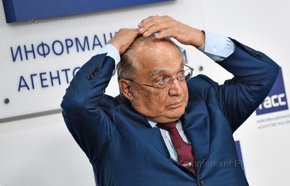 Пресс-конференция на тему "Инициативы КПРФ в сфере образования как важнейшая часть программы развития страны", посвященная предвыборной программе КПРФ и предложениям партии по изменению системы образования в России, в информационном агентстве ТАСС. Ректор Московского государственного университета (МГУ) имени М.В.Ломоносова Виктор Садовничий во время пресс-конференции.