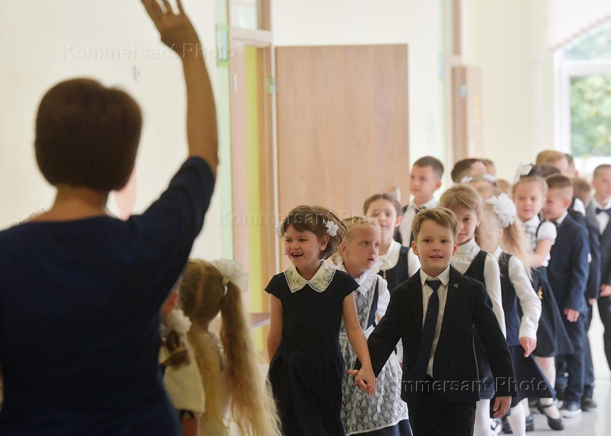 Праздник "День знаний", посвященный началу нового учебного года в МБОУ "Гимназия №16" города Мытищи. Учащиеся во время занятий в классе.
