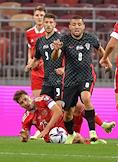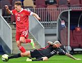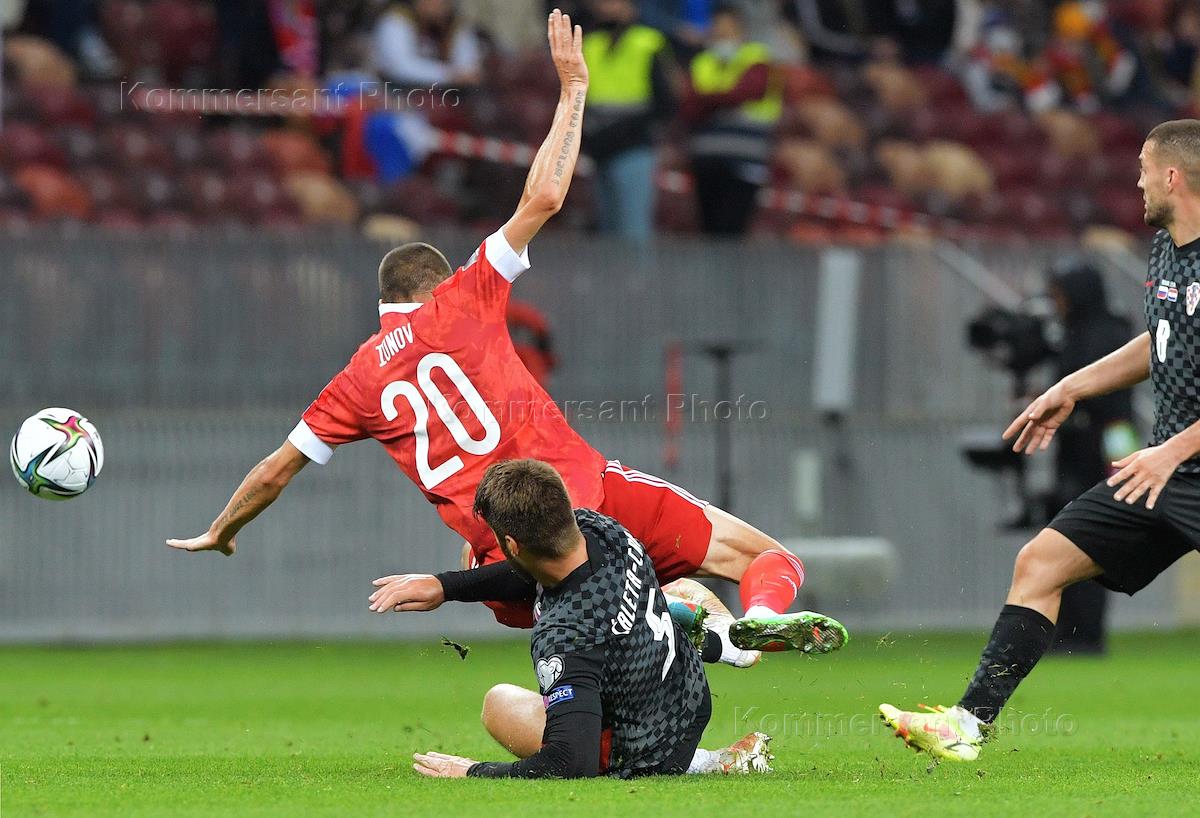 Отборочный матч Чемпионата мира-2022 по футболу между национальными сборными России и Хорватии на Большой спортивной арене Олимпийского комплекса "Лужники". Игрок сборной команды России Далер Кузяев (слева) во время матча.