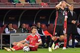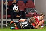 Отборочный матч Чемпионата мира-2022 по футболу между национальными сборными России и Хорватии на Большой спортивной арене Олимпийского комплекса "Лужники". Игрок сборной команды России Антон Заболотный (слева) во время матча.