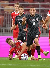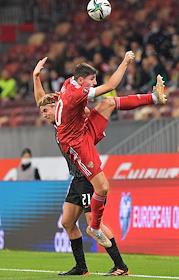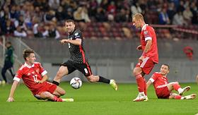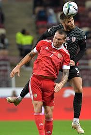 Отборочный матч Чемпионата мира-2022 по футболу между национальными сборными России и Хорватии на Большой спортивной арене Олимпийского комплекса "Лужники". Игрок сборной команды России Игорь Дивеев (справа) во время матча.