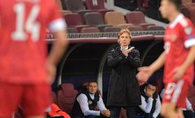 Отборочный матч Чемпионата мира-2022 по футболу между национальными сборными России и Хорватии на Большой спортивной арене Олимпийского комплекса "Лужники". Главный тренер сборной команды России Валерий Карпин (в центре) во время матча.
