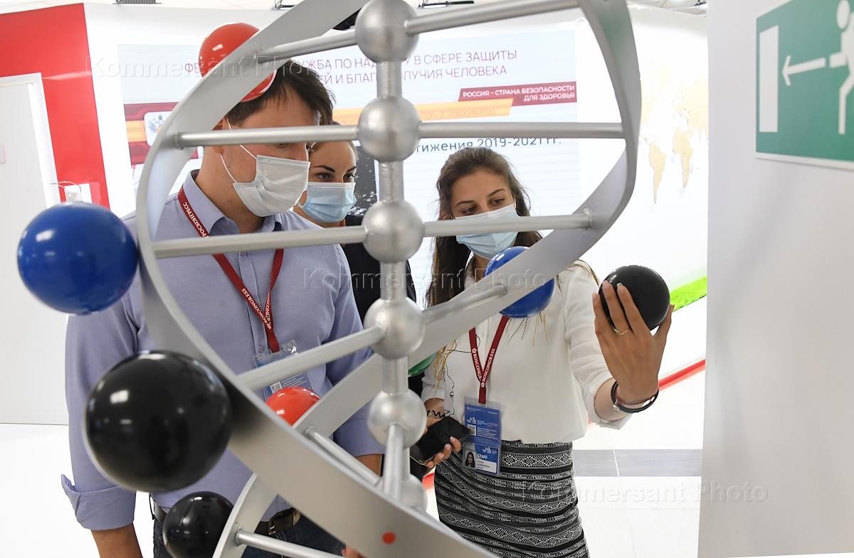 VI Восточный экономический форум (ВЭФ) 2021 на острове Русский. День первый. Жанровая фотогрофия. Сотрудники на стенде АО "Восточный Порт".