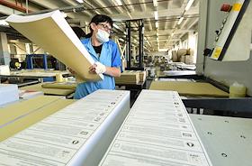 Подготовка к Единому дню голосования. Печать избирательных бюллетеней для голосования на выборах депутатов Государственной думы России в типографии "Советская Сибирь". Секретарь Избирательной комиссии Новосибирской области Наталья Кошкина во время печати избирательных бюллетеней.