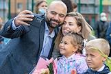 Праздник "День знаний", посвященный началу нового учебного года в образовательной школе № 491. Учащиеся и родители перед началом торжественной линейки.