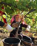 Сбор винограда на плантациях АО ПАО "Массандра", для будущих вин и игристого. Жанровая фотография. Работницы срезают с лозы гроздья винограда.