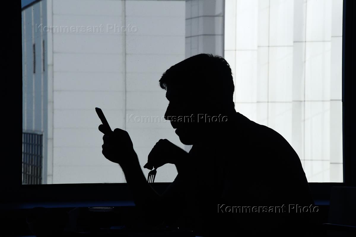 Восточный экономический форум (ВЭФ) 2021 на острове Русский. День третий. Жанровая фотография. Силуэт человека с мобильным телефоном.