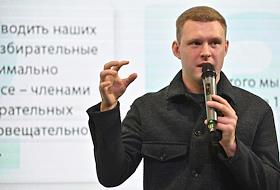 Всероссийский форум наблюдателей партии "Новые люди" в Доме культуры "Рассвет". Кандидат в Государственную думу России Ярослав Самылин на форуме.
