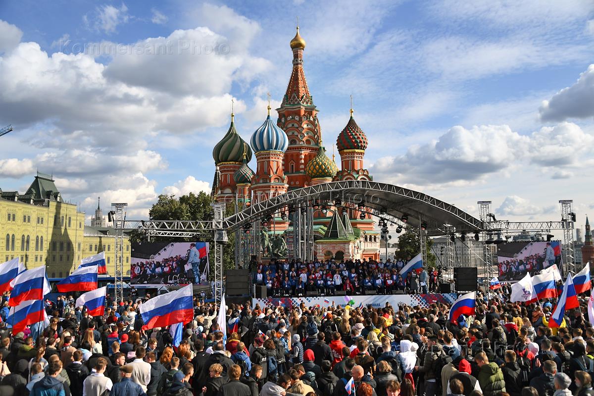 Церемония чествования российских спортсменов после XVI Паралимпийских игр в Токио на Красной площади. Выступление юных спортсменов.