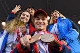 Церемония чествования российских спортсменов после XVI Паралимпийских игр в Токио на Красной площади. Российские спортсмены Владимир Даниленко (в центре) и Виктория Ищиулова (слева) на церемонии.