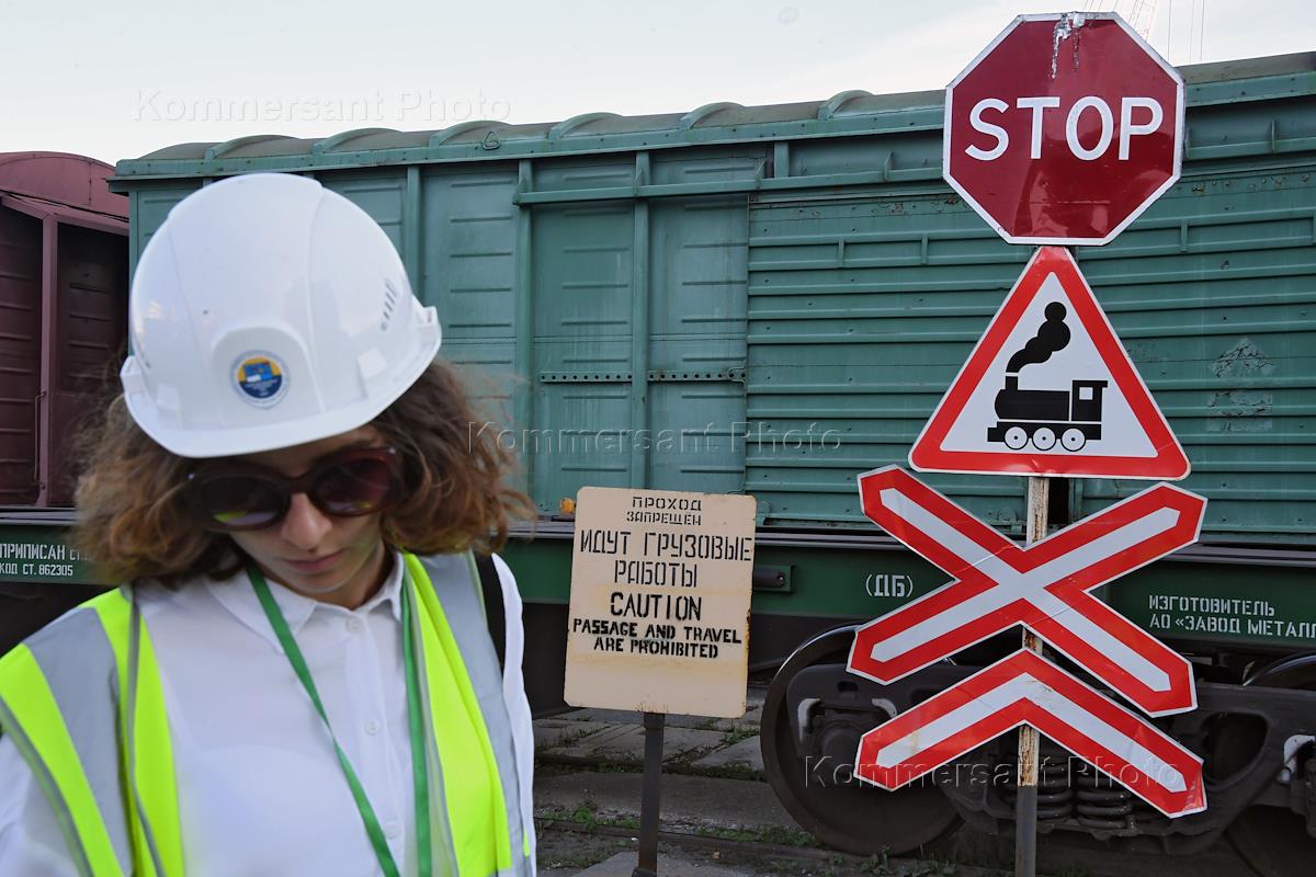 Виды Владивостока. Жанровая фотография. Дорожные знаки и железнодорожные рельсы на территории Владивостокского морского торгового порта.