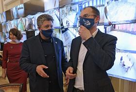 Демонстрация процедуры наблюдения за дистанционным электронным голосованием (ДЭГ) в ситуационном центре Общественной палаты России. Руководитель Координационного совета Общественной палаты России по контролю за голосованием Максим Григорьев (в центре) и заместитель генерального директора по цифровизации избирательных процессов "РТ Лабс" Юрий Сатиров (справа) во время демонстрации.