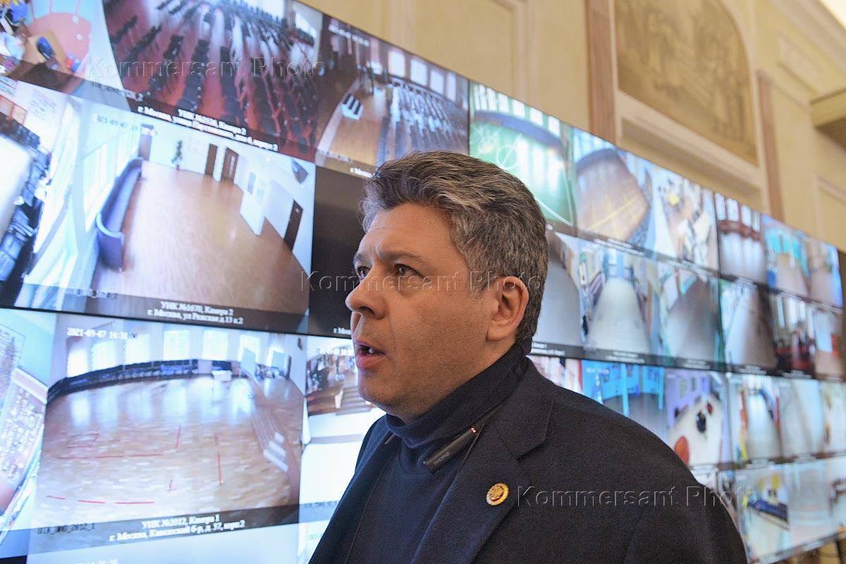 Демонстрация процедуры наблюдения за дистанционным электронным голосованием (ДЭГ) в ситуационном центре Общественной палаты России. Руководитель Координационного совета Общественной палаты России по контролю за голосованием Максим Григорьев во время демонстрации.