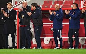 Отборочный матч Чемпионата мира-2022 по футболу между национальными сборными России и Мальты на стадионе "Открытие Арена". Главный тренер сборной России Валерий Карпин (второй справа) во время матча.