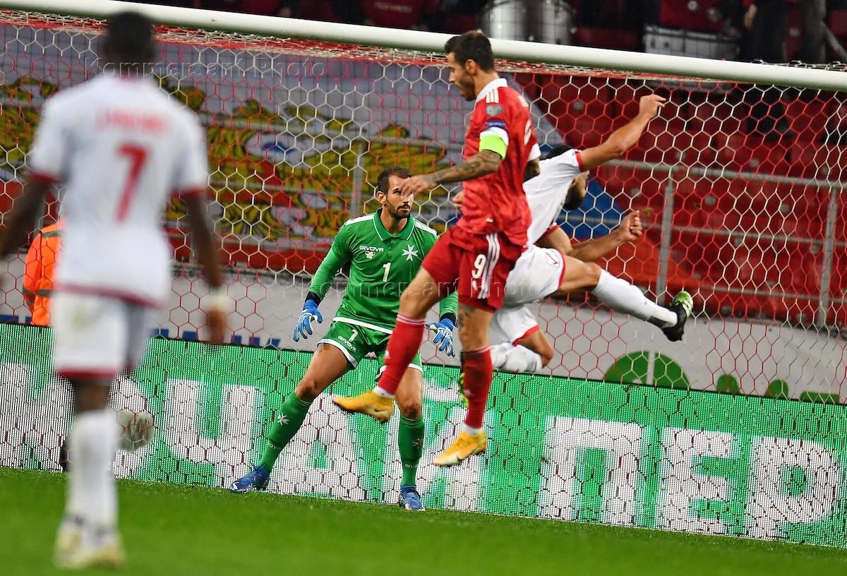Отборочный матч Чемпионата мира-2022 по футболу между национальными сборными России и Мальты на стадионе "Открытие Арена". Вратарь сборной Мальты Анри Бонелло во время матча.