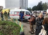 Взрыв бытового газа в жилом доме 9а по улице "28 июня". Автомобиль "Скорой помощи" на месте происшествия.