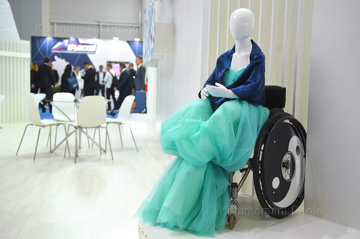 IX Международный форум "Россия - спортивная держава" в международном выставочном центре "Казань Экспо". Выставка "Современный спорт. Инновации и перспективы" (MSIP). Манекен на инвалидном кресле.