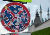 Виды Казани. Жанровая фотография. Заклеенный этикетками дорожный знак "Остановка запрещена".
