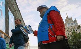 Жанровая фотография. Предвыборная агитация на улицах города. Агитация за кандидата на выборах депутатов Государственной думы России от партии ЛДПР на площади у здания Концертного зала имени П.И.Чайковского.
