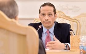 Вице-премьер, министр иностранных дел Катара Мухаммед бен Абдель Рахман Аль Тани во время переговоров с министром иностранных дел России Сергеем Лавровым. Переговоры прошли в Доме приемов МИД России.