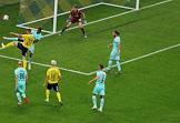 Российская Премьер-Лига (РПЛ). Тинькофф - Чемпионат России по футболу 2021/2022. 7-й тур. Матч между командами "Ростов" (Ростов-на-Дону) и "Краснодар" (Краснодар) на стадионе "Ростов Арена". Вратарь команды "Краснодар" Матвей Сафонов (в центре) во время матча.