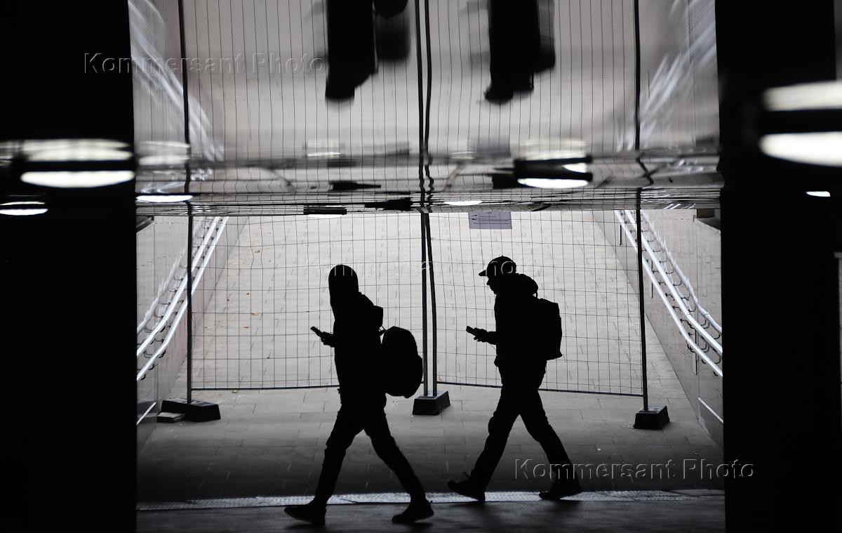 Жанровая фотография. Силуэты людей в подземном пешеходном переходе.