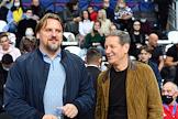 IX Благотворительный баскетбольный матч в поддержку детей с ДЦП в Баскет-холле "Москва" СК "Мегаспорт". Первый заместитель председателя Государственной Думы России Александр Жуков (справа) и футболист Дмитрий Булыкин (слева) перед началом матча.