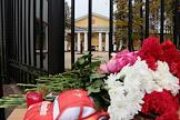 Цветы у здания Пермского государственного университета (ПГУ) в память о погибших в результате стрельбы в ПГУ. 20 сентября студент Тимур Бекмансуров открыл стрельбу по случайным людям в университете.