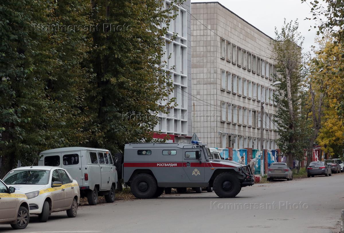 Shooting at the Perm State National Research University on Genkel Street (PGNIU). Law enforcement officers at the scene outside the Perm State National Research University, where an unknown person opened fire in one of the buildings.
