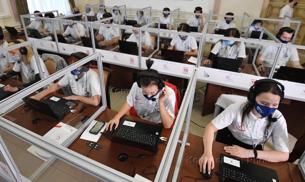 Ситуационный центр Общественной палаты России по мониторингу соблюдения избирательных прав граждан в единый день голосования. Жанровая фотография.