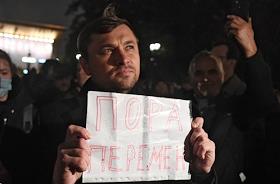 Митинг "Народное обсуждение итогов выборов", организованный КПРФ на Пушкинской площади. Доцент кафедры теории функций и функционального анализа отделения математики механико-математического факультета Михаил Лобанов во время митинга.