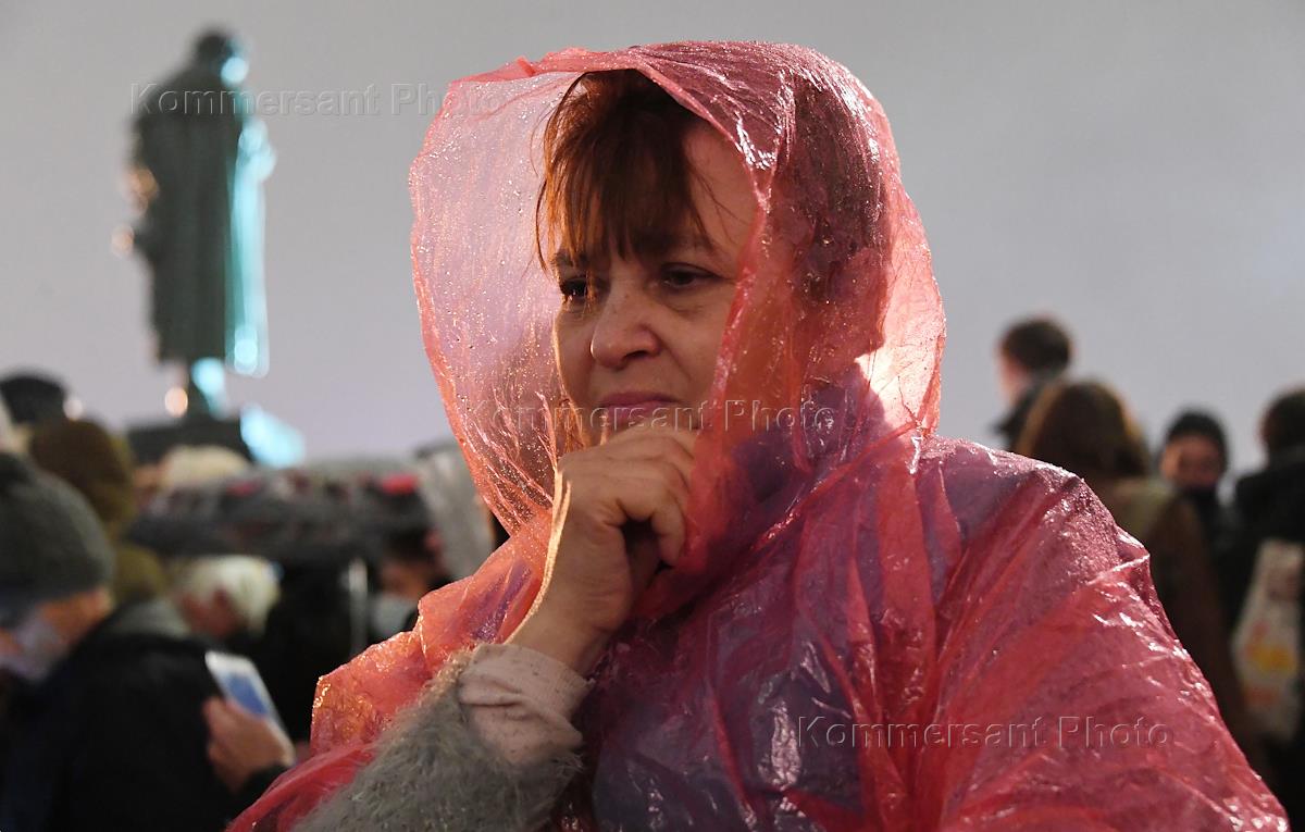 Митинг "Народное обсуждение итогов выборов", организованный КПРФ на Пушкинской площади. Участница во время митинга.