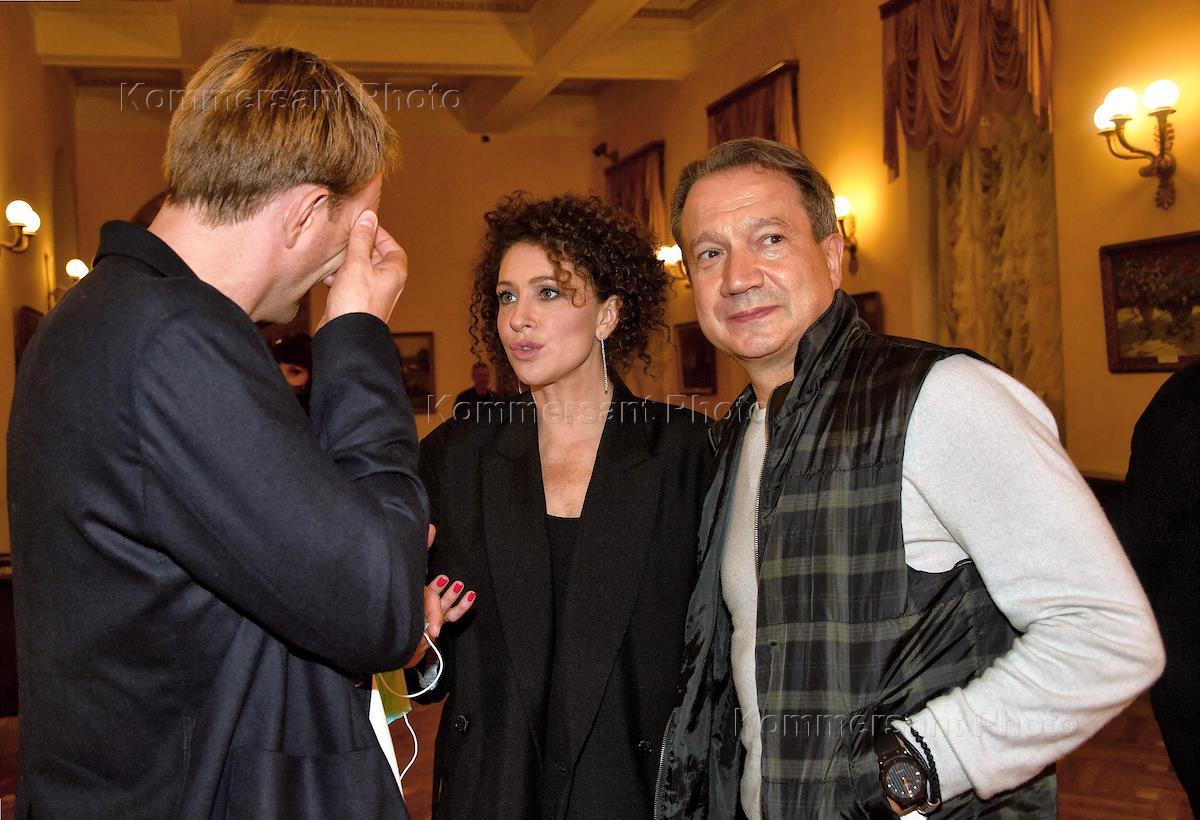 32-й Открытый Российский кинофестиваль "Кинотавр". День третий. Слева направо: актер Андрей Бурковский, художественный руководитель Московского театра "Современник" Виктор Рыжаков и актриса Варвара Шмыкова перед показом фильма "Мама, я дома" режиссера Владимира Битокова.