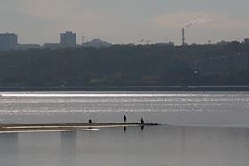 Виды Казани. Жанровая фотография. Рыбаки на обмелевшем участке реки Казанки.
