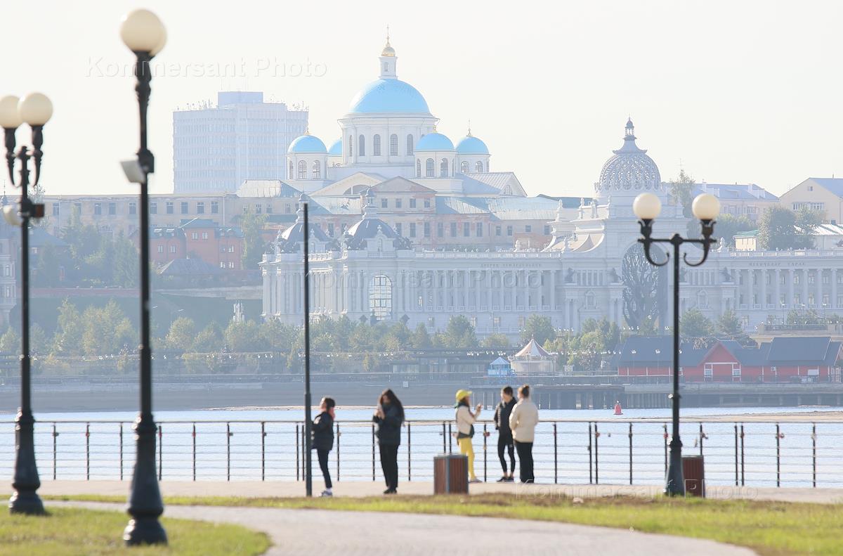 Виды Казани. Жанровая фотография. Туристы фотографируются на фоне достопримечательностей Казани.