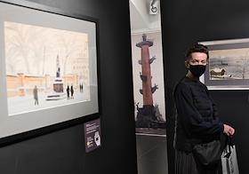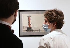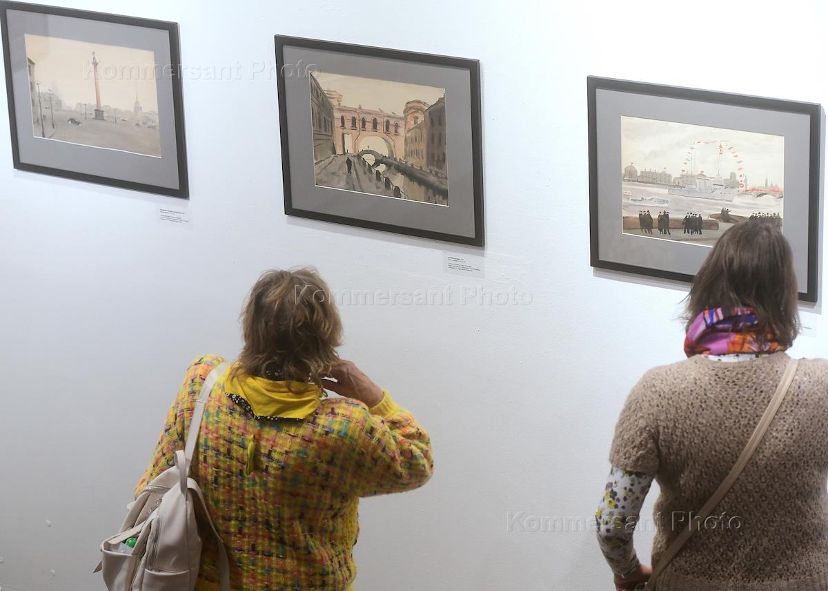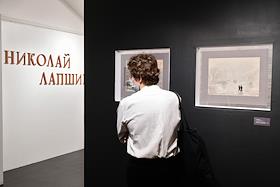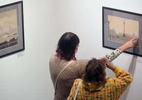 Выставка графических работ Николая Лапшина 1937-1940 годов в галереи KGallery. Зрители на выставке.