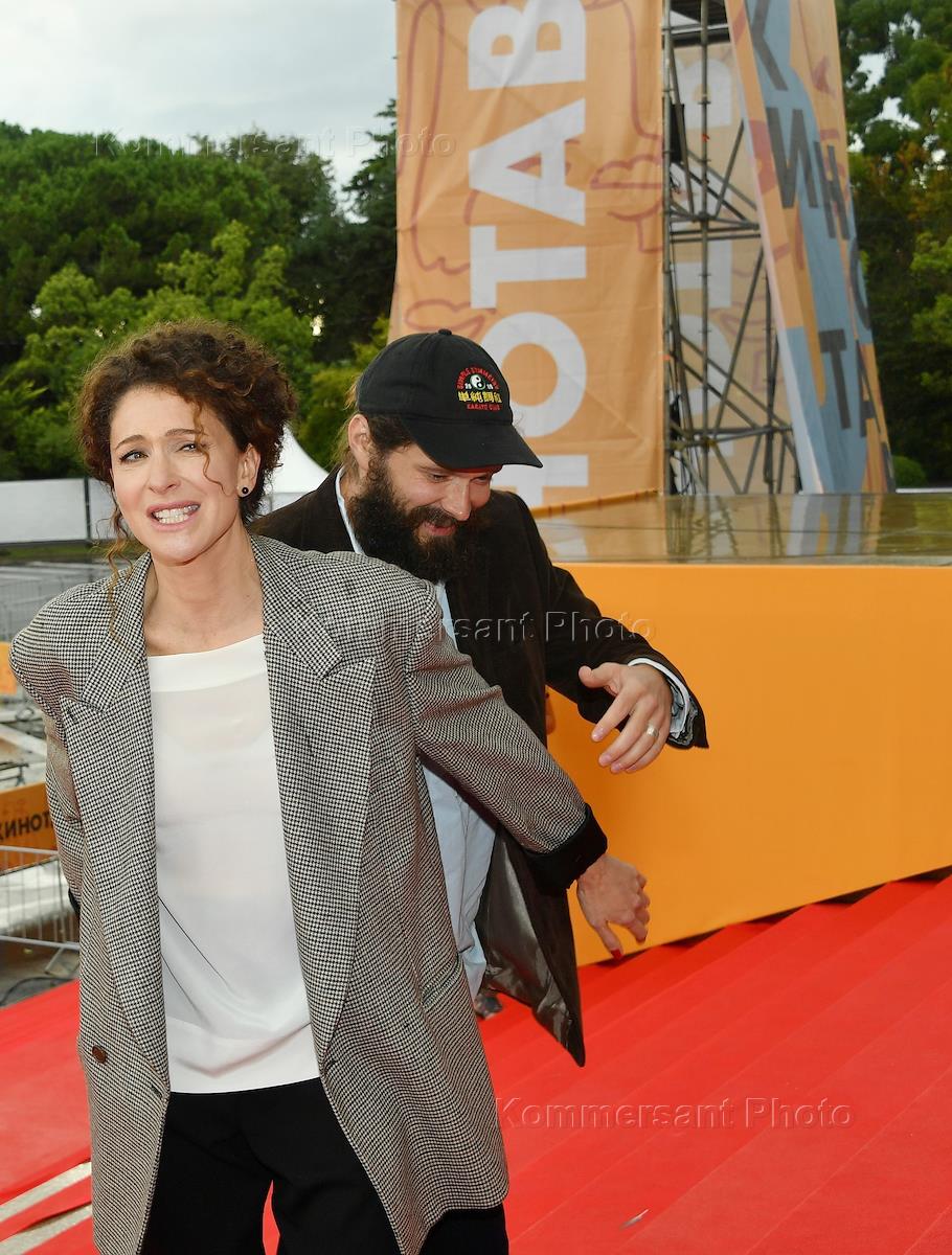32-й Открытый Российский кинофестиваль "Кинотавр". День четвертый. Актриса Ксения Раппопорт (слева) и режиссер Григорий Добрыгин (справа) перед показом фильма режиссера Григория Добрыгина "На близком расстоянии".