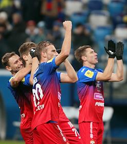 Российская Премьер-Лига (РПЛ). Тинькофф - Чемпионат России по футболу 2021/2022. 9-й тур. Матч между командами "Нижний Новгород" (Нижний Новгород) и ЦСКА (Москва) на стадионе "Нижний Новгород". Игроки команды ЦСКА после окончания матча.