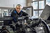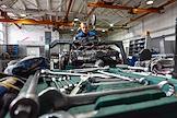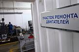 "Югпром" - официальный диллер сельхозтехники Ростсельмаш на Юге России. На базе компании "Ставропольопторг" расположен магазин, склад запчастей и сервисный центр по ремонту. Жанровая фотография. Табличка "Участок ремонта двигателей".