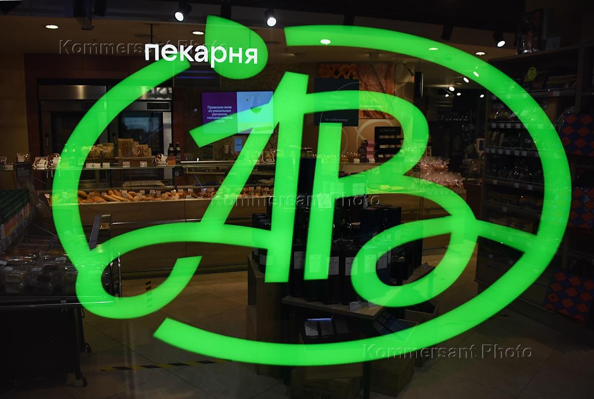 Работа супермаркета "Азбука вкуса" на Арбате. Жанровая фотография. Покупатели в торговом зале супермаркета.