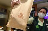 Работа супермаркета "Азбука вкуса" на Арбате. Жанровая фотография. Сотрудница супермаркета в отделе выпечки.