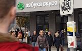 Работа супермаркета "Азбука вкуса" на Арбате. Жанровая фотография.