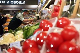 Работа супермаркета "Азбука вкуса" на Арбате. Жанровая фотография. Сотрудница супермаркета и покупатели в овощном отделе супермаркета.