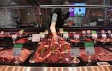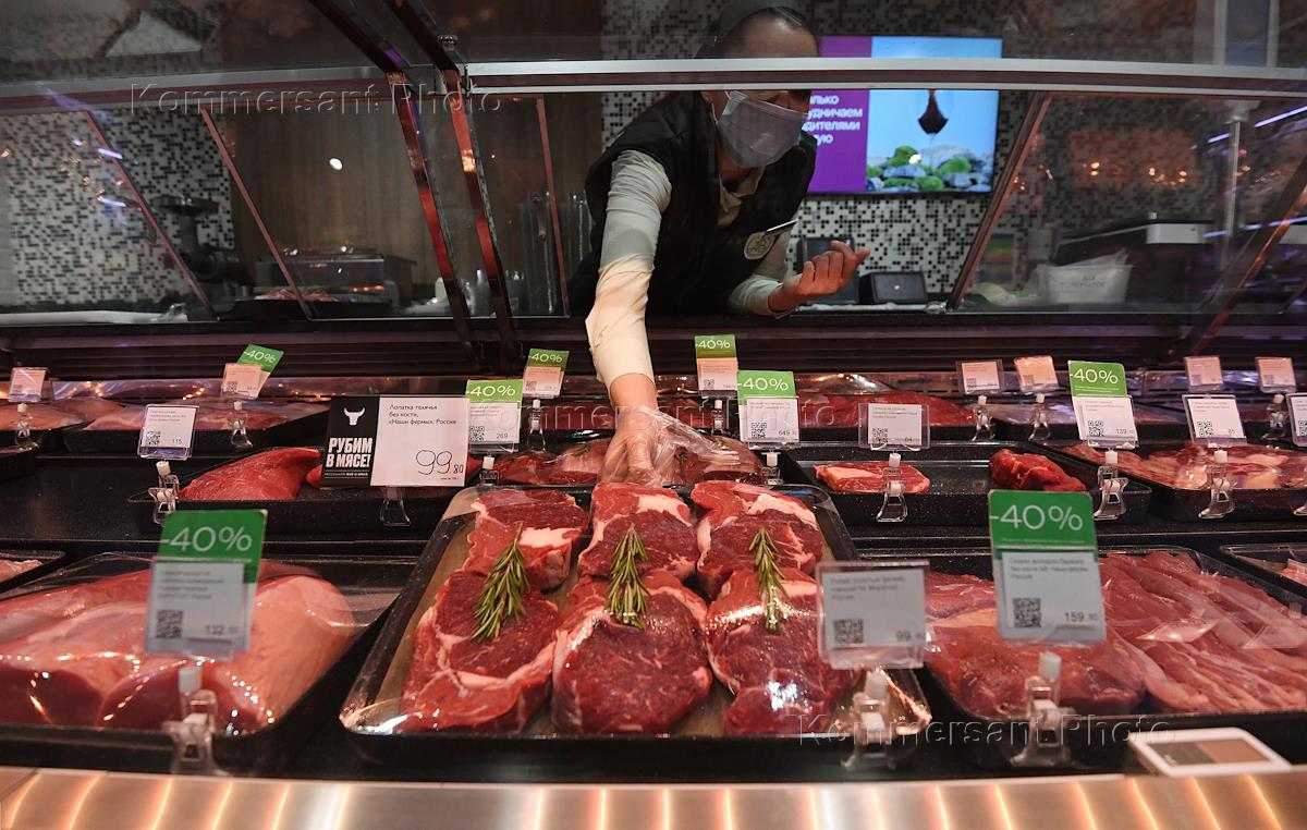 Работа супермаркета "Азбука вкуса" на Арбате. Жанровая фотография. Сотрудница супермаркета в мясном отделе.