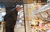 Работа супермаркета "Азбука вкуса" на Арбате. Жанровая фотография. Покупатель в кондитерском отделе супермаркета.