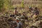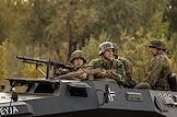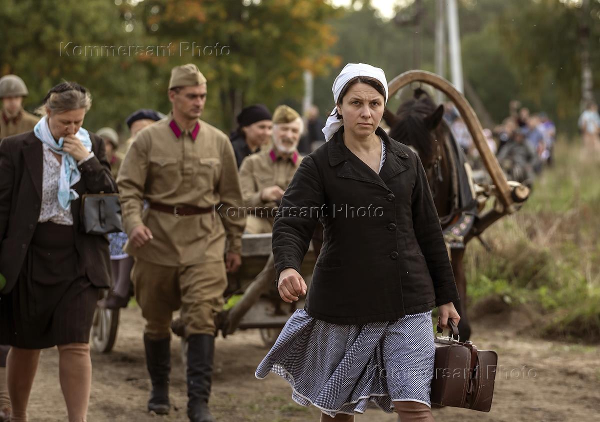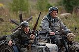Военно-историческая реконструкция "Бой Колобанова", посвященная 80-й годовщине легендарного боя экипажа танка КВ-1 под командованием Зиновия Колобанова, в котором было уничтожено 22 немецких танка, в поселке Виллози Ломоносовского района. Участники реконструкции.