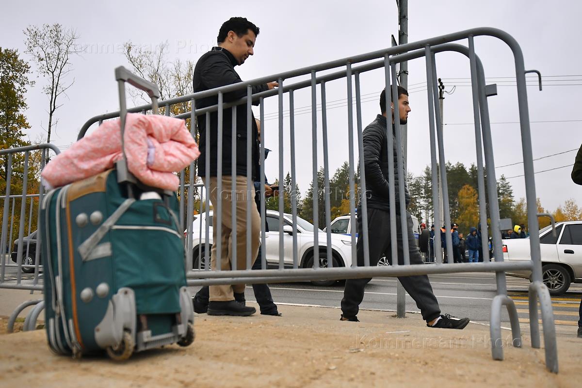 Многофункциональный миграционный центр накануне отмены послаблений для иностранных граждан. Жанровая фотография. Очередь из мигрантов в Многофункциональный миграционный центр на Варшавском шоссе.