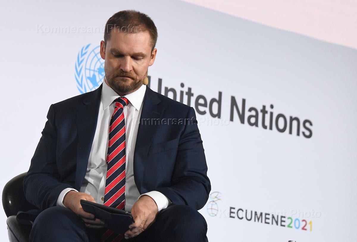 Первый конгресс Ecumene 2021 по устойчивому развитию, посвященный вопросам ответственного финансирования, прошел в кампусе Сколково. Первый заместитель председателя комитета Государственной думы России по физической культуре, спорту, туризму и делам молодежи, посол доброй воли ООН, председатель Центрального совета Всероссийского общества охраны природы (ВООП) Вячеслав Фетисов во время сессии "Следующие шаги по достижению Целей устойчивого развития ООН до 2030 года".