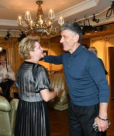 Вечер в честь 50-летия Николая Ускова в Baltzer Club. Директор частного музей российского художника Анатолия Зверева Наталия Опалева (слева) и президент холдинга Global Venture Alliance Магомед Мусаев (справа) на вечере.