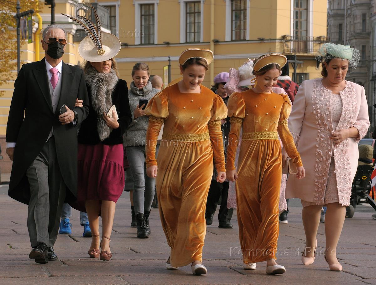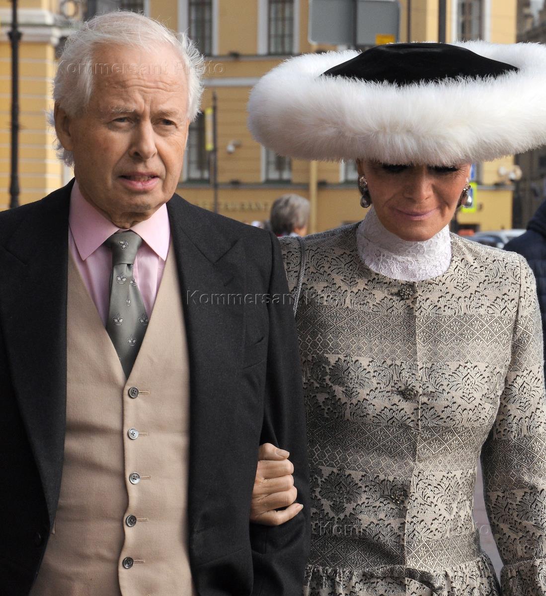 Wedding of the descendant of the Romanov dynasty Georgy Mikhailovich with Italian citizen Rebecca Bettarini in St. Isaac's Cathedral. A descendant of the Romanov dynasty, Georgy Mikhailovich (center, right) and his wife, Most Serene Princess Victoria Romanovna (center, left) after the wedding.